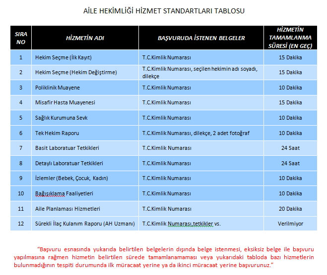 Hizmet Standartları Tablosu